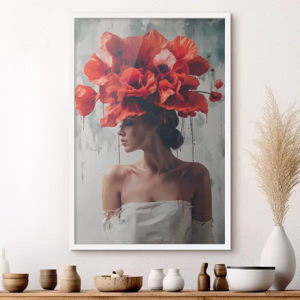 Affiche Fille avec des coquelicots sur la tête Non f40338