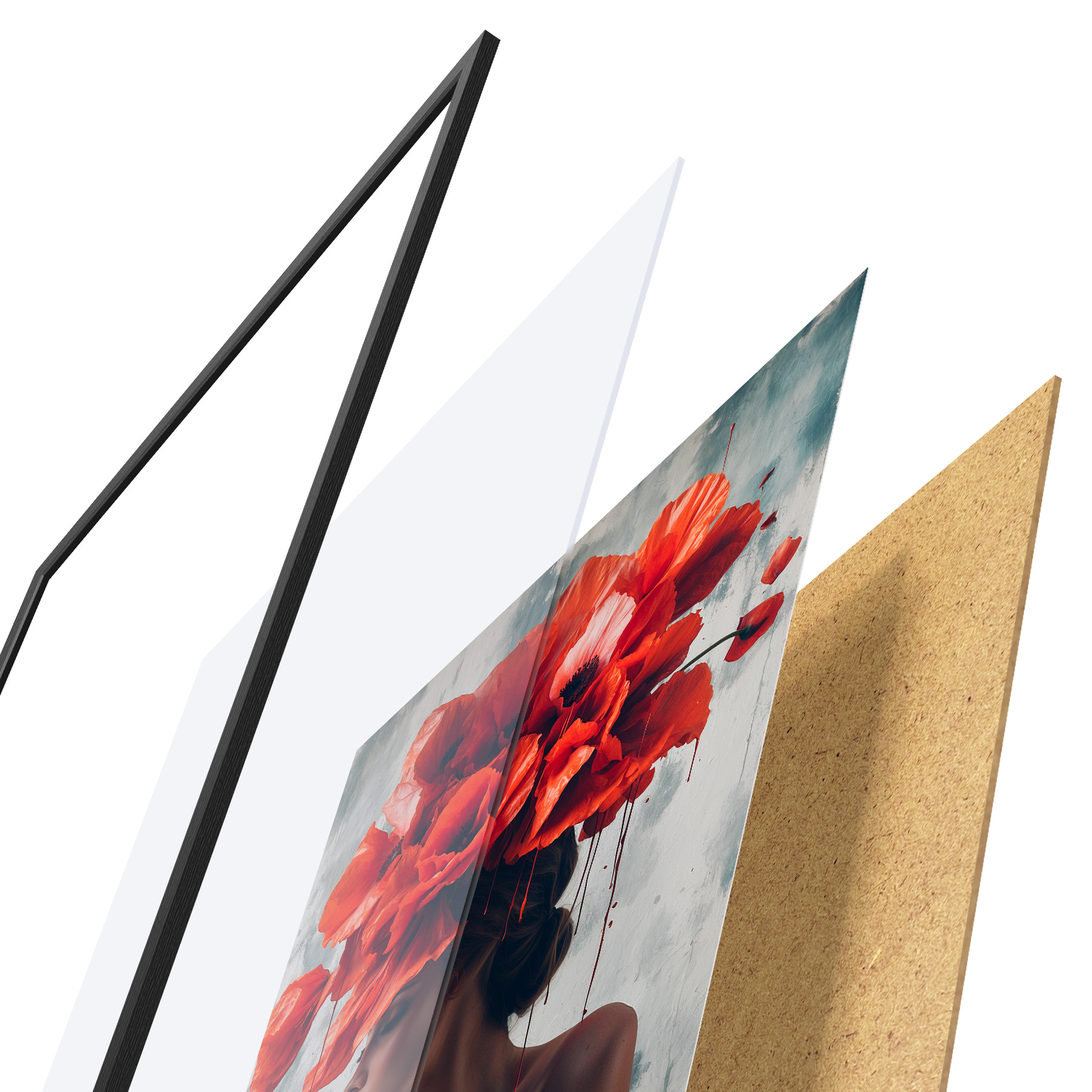 Le poster se compose d'un cadre, d'un plexiglas, d'une image imprimée et d'un support en aggloméré. Le poster peut être immédiatement accroché au mur grâce aux fixations au dos.