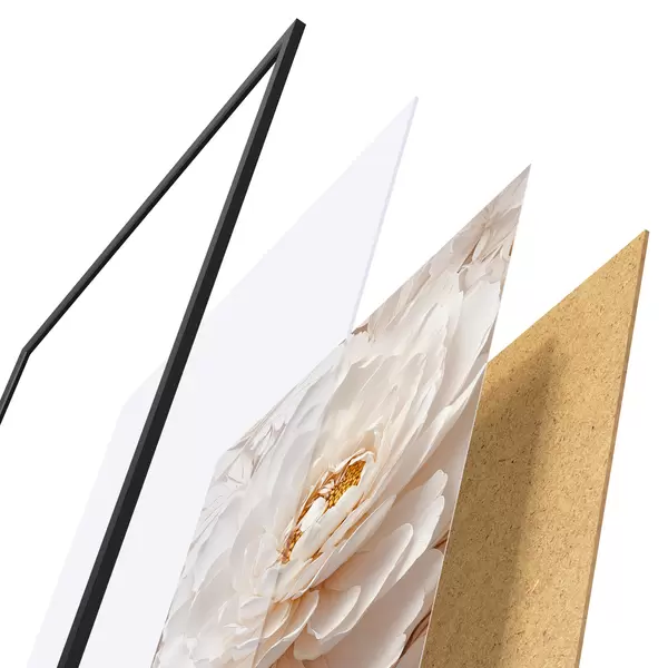 Le poster se compose d'un cadre, d'un plexiglas, d'une image imprimée et d'un support en aggloméré. Le poster peut être immédiatement accroché au mur grâce aux fixations au dos.