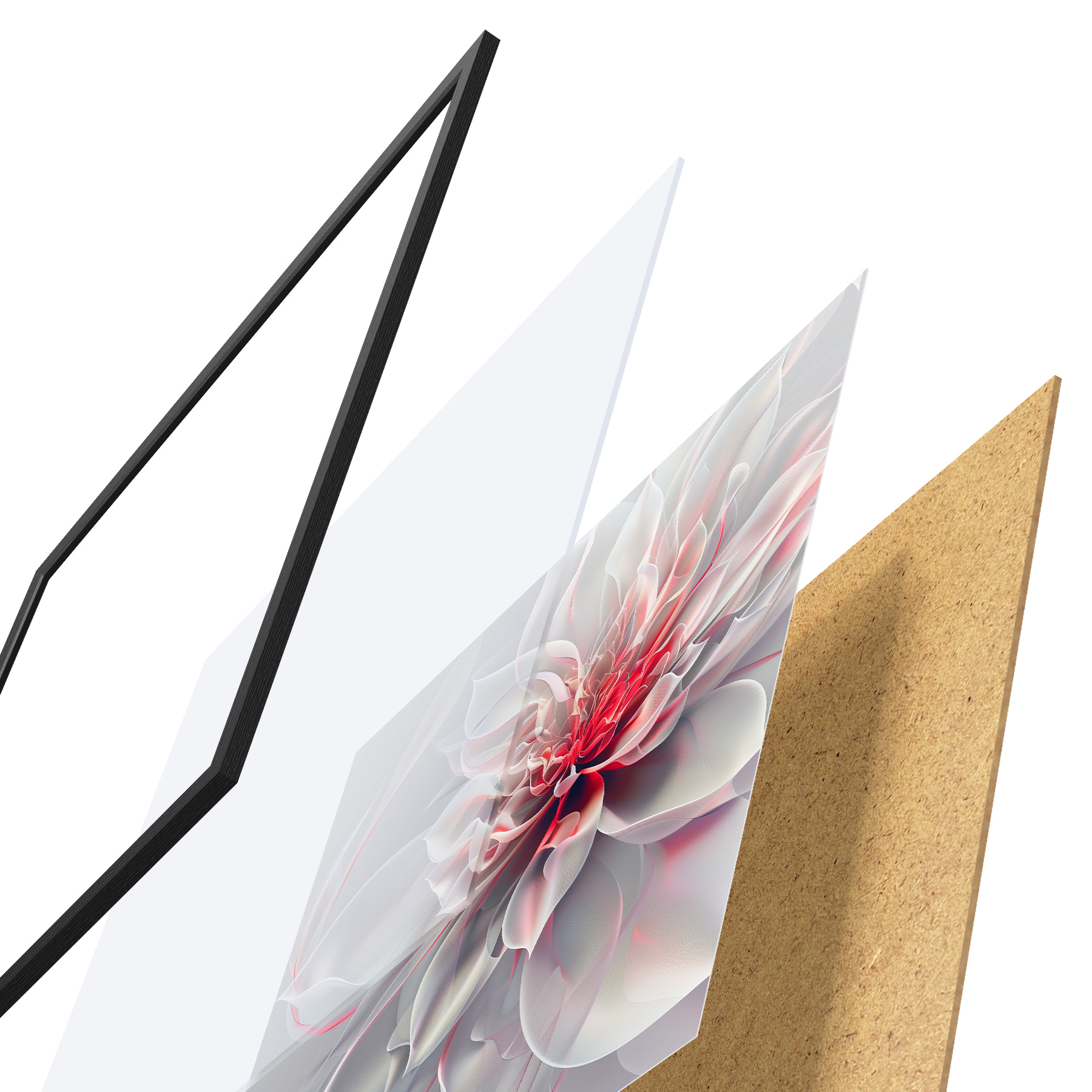 Le poster se compose d'un cadre, d'un plexiglas, d'une image imprimée et d'un support en aggloméré. Le poster peut être immédiatement accroché au mur grâce aux fixations au dos.