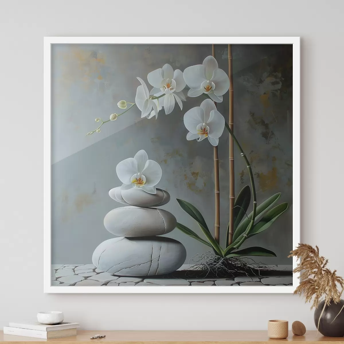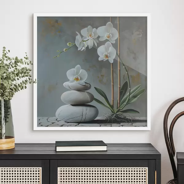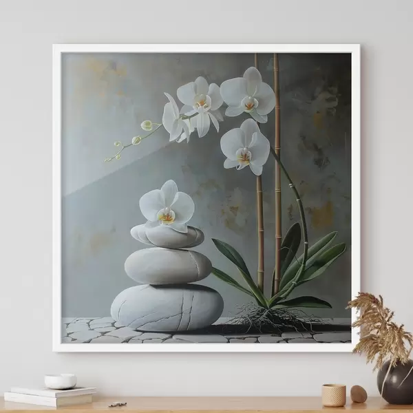 Affiche Orchidée sur un mur gris Non f40368
