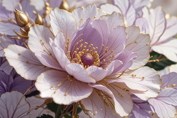 Affiche Gros plan d'une grande fleur de pivoine rose pâle avec des pétales délicats et un centre jaune vif Non f40384
