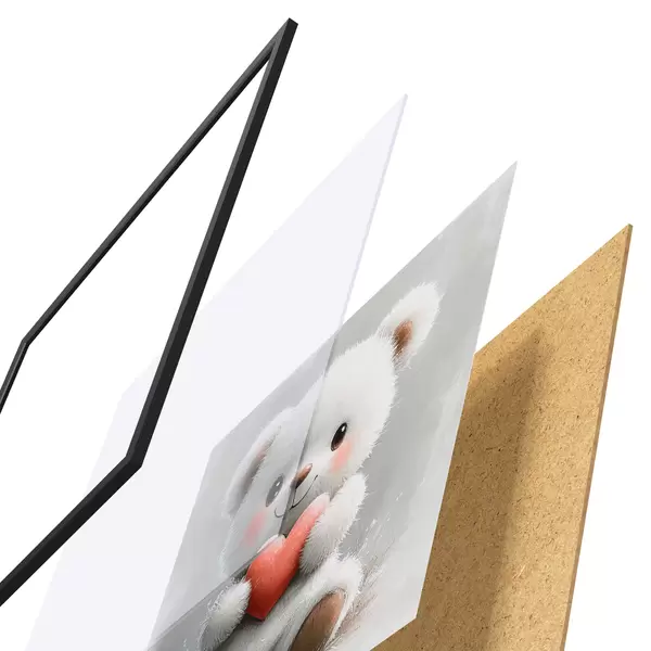 Le poster se compose d'un cadre, d'un plexiglas, d'une image imprimée et d'un support en aggloméré. Le poster peut être immédiatement accroché au mur grâce aux fixations au dos.