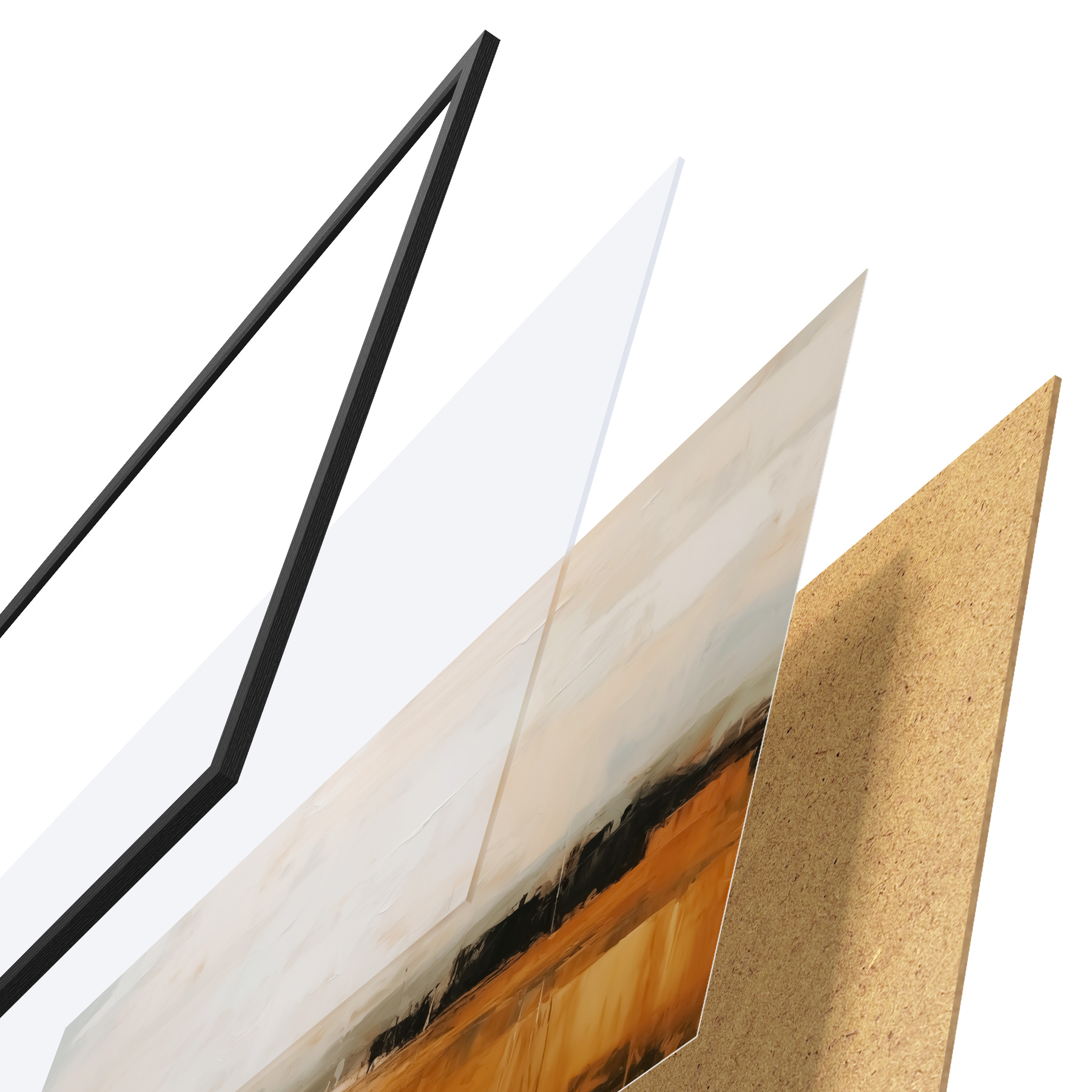 Le poster se compose d'un cadre, d'un plexiglas, d'une image imprimée et d'un support en aggloméré. Le poster peut être immédiatement accroché au mur grâce aux fixations au dos.