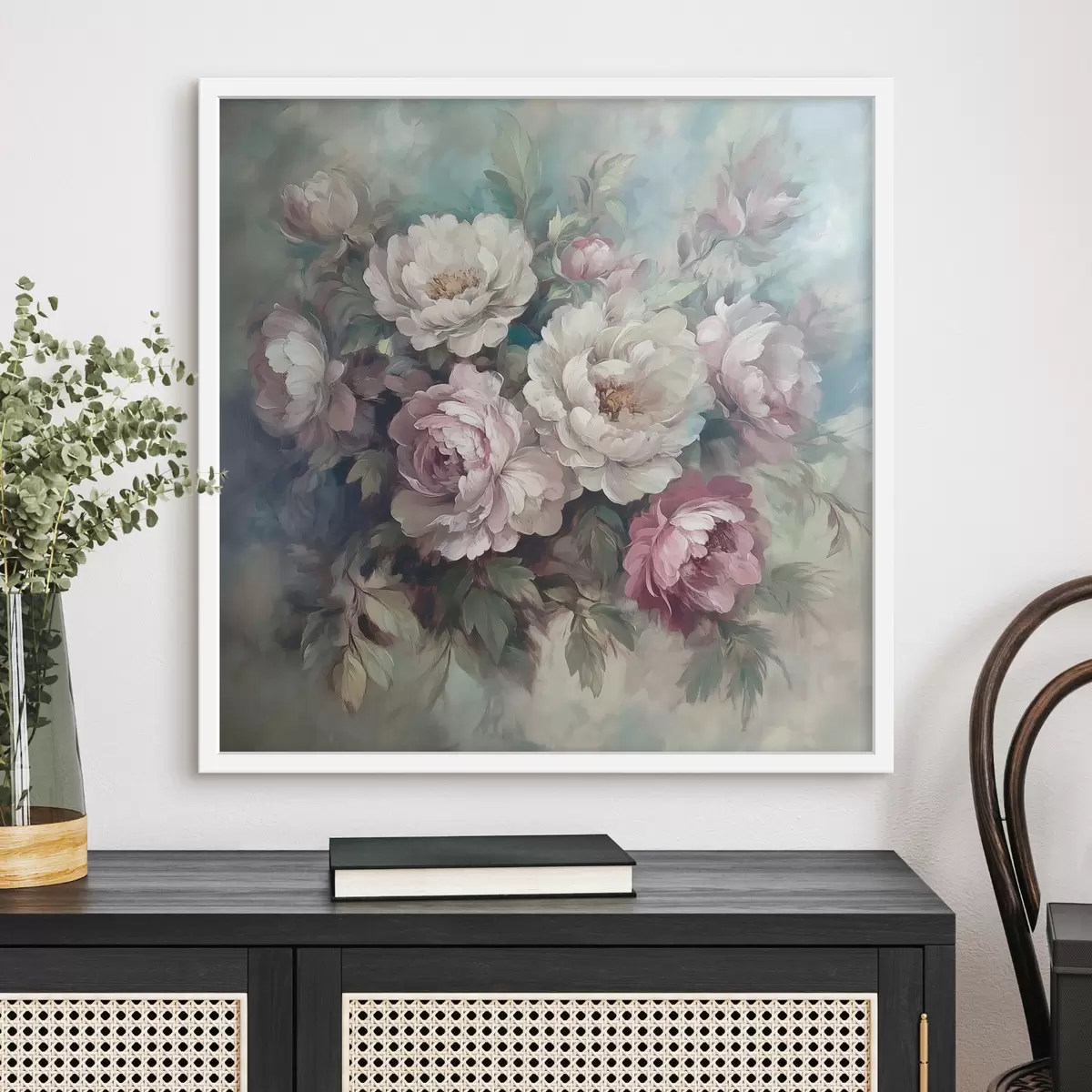 Affiche Bouquet de pivoines roses et blanches en peinture à l'huile f40582