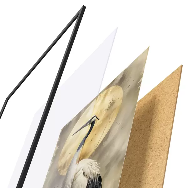 Le poster se compose d'un cadre, d'un plexiglas, d'une image imprimée et d'un support en aggloméré. Le poster peut être immédiatement accroché au mur grâce aux fixations au dos.