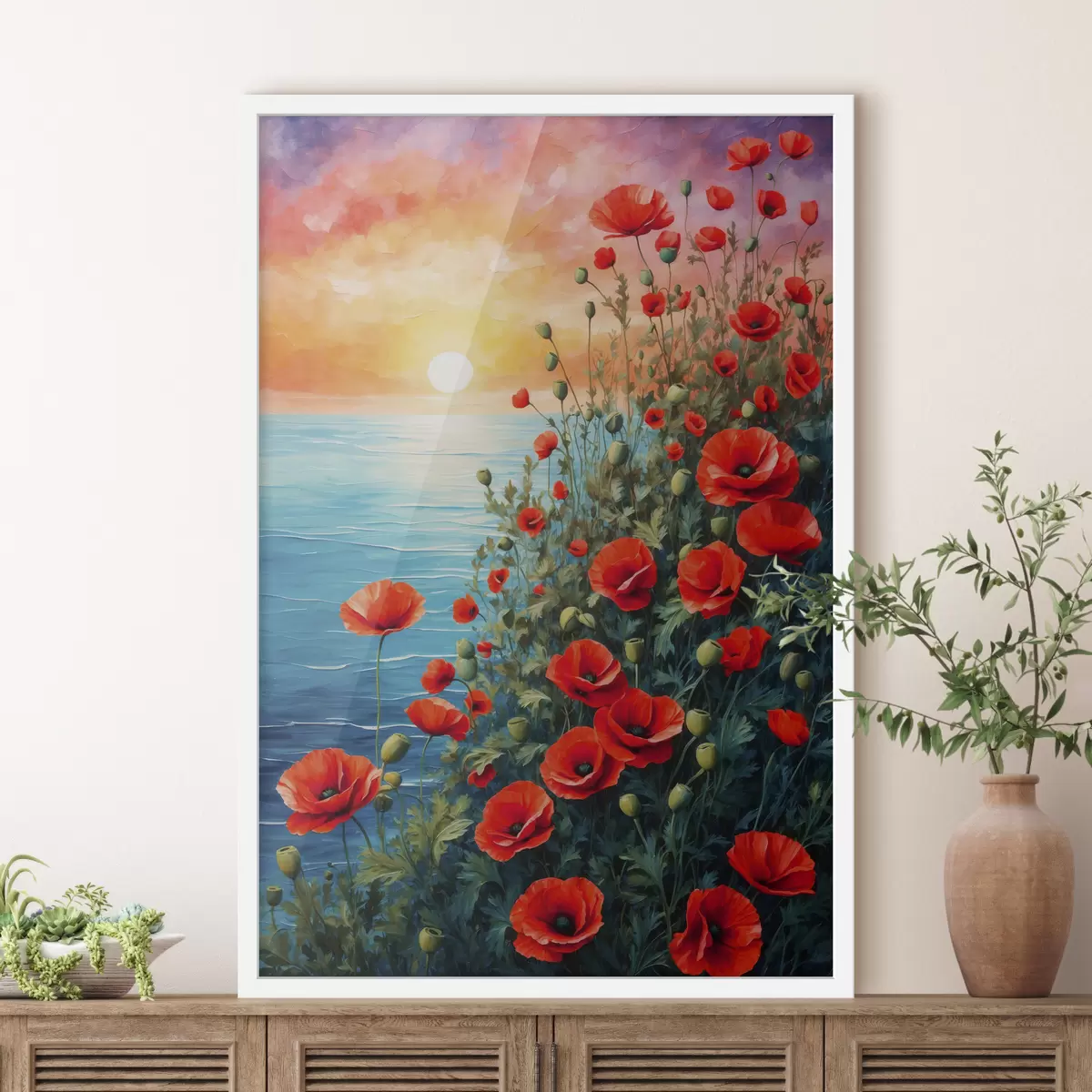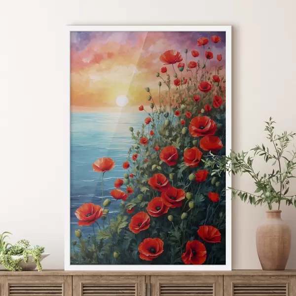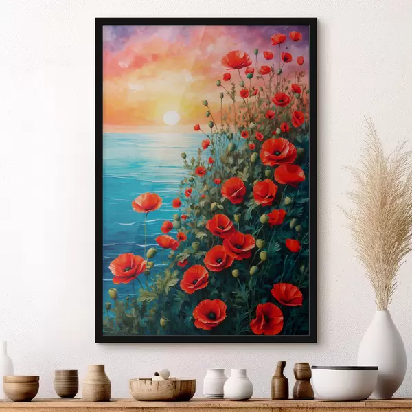 Affiche Coquelicots en fleurs sur fond de mer Non f40637