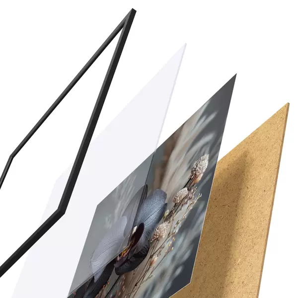 Le poster se compose d'un cadre, d'un plexiglas, d'une image imprimée et d'un support en aggloméré. Le poster peut être immédiatement accroché au mur grâce aux fixations au dos.