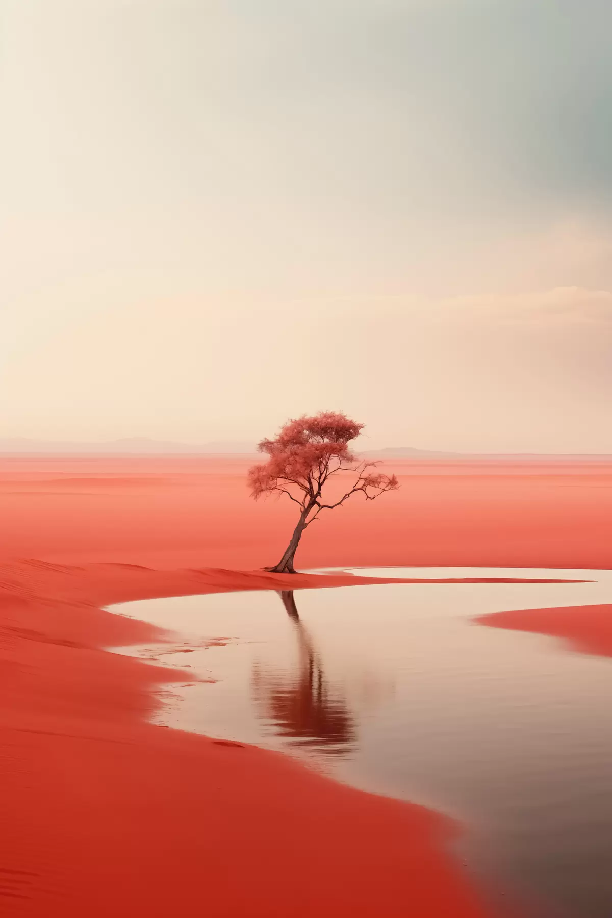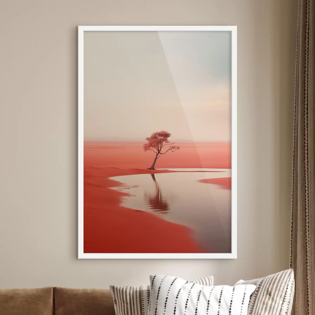 Affiche Paysage minimaliste arbre au bord de la rivière, couleur rouge, gris Non f40722