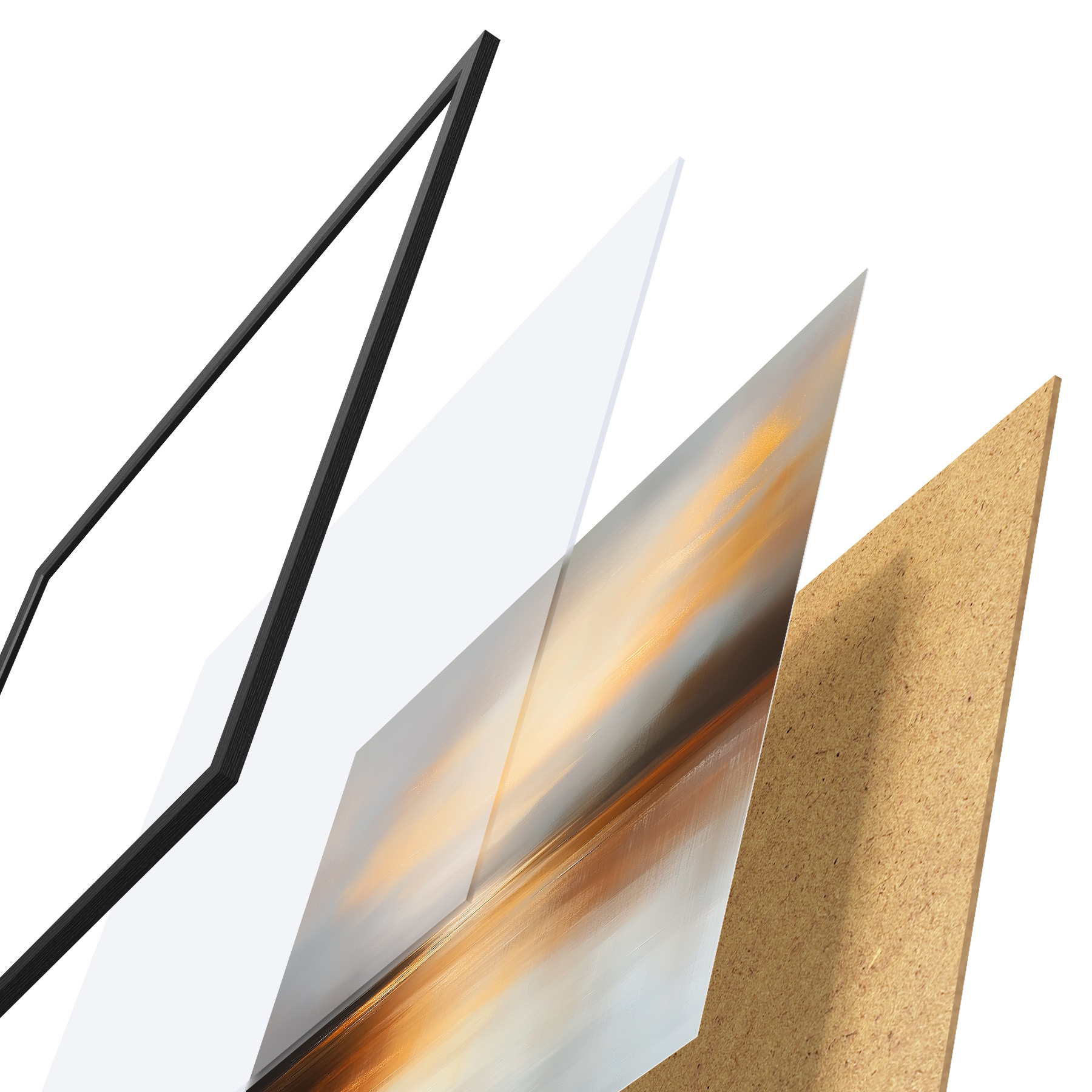 Le poster se compose d'un cadre, d'un plexiglas, d'une image imprimée et d'un support en aggloméré. Le poster peut être immédiatement accroché au mur grâce aux fixations au dos.