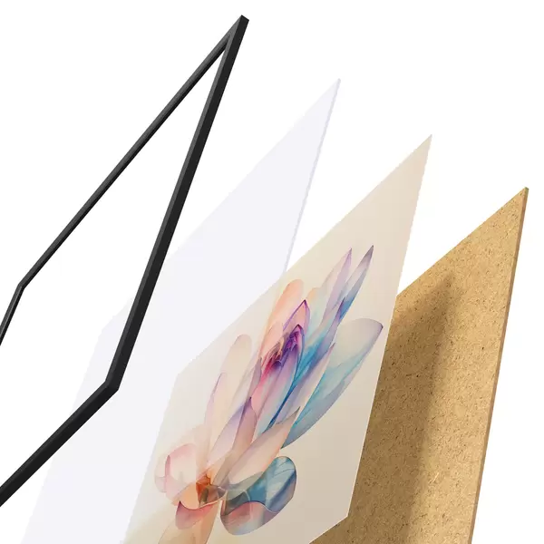 Le poster se compose d'un cadre, d'un plexiglas, d'une image imprimée et d'un support en aggloméré. Le poster peut être immédiatement accroché au mur grâce aux fixations au dos.