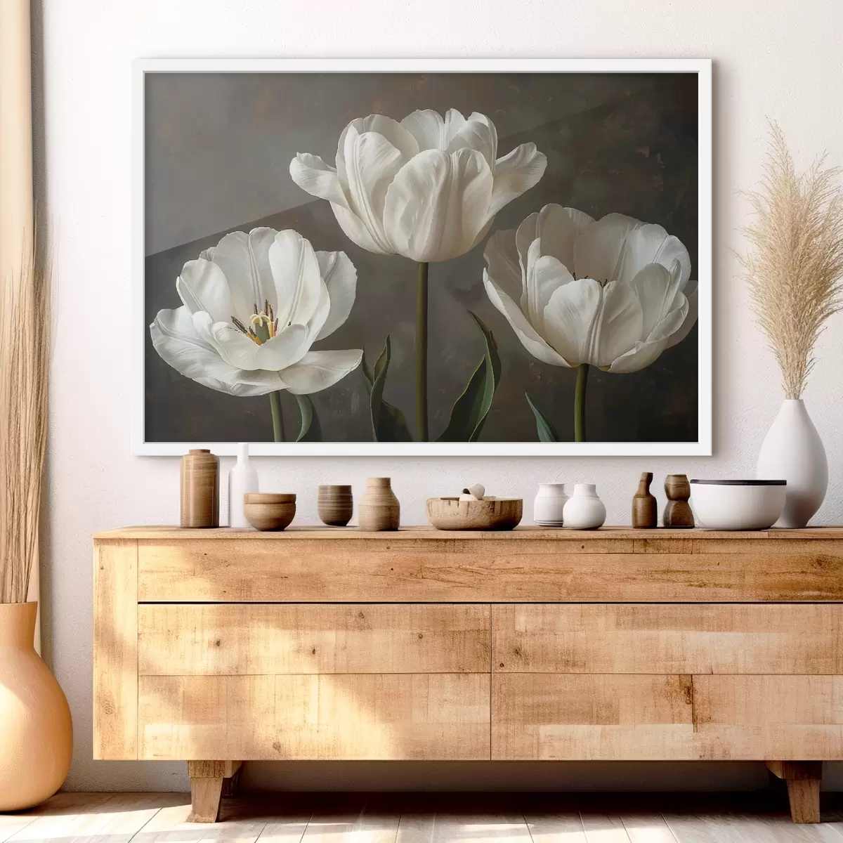 Affiche Grandes fleurs de tulipe, tulipes blanches Non f40792