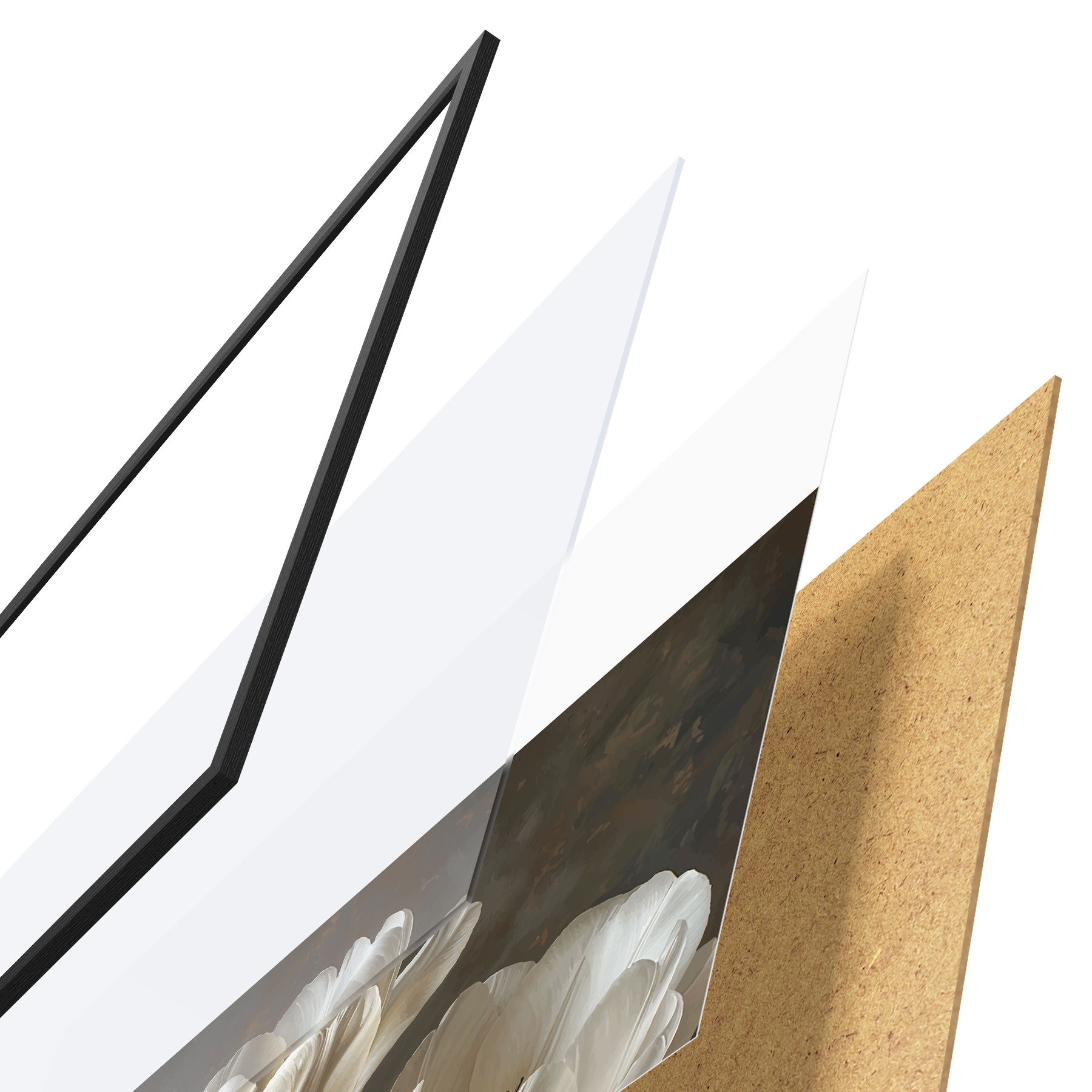Le poster se compose d'un cadre, d'un plexiglas, d'une image imprimée et d'un support en aggloméré. Le poster peut être immédiatement accroché au mur grâce aux fixations au dos.