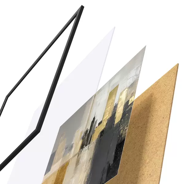 Le poster se compose d'un cadre, d'un plexiglas, d'une image imprimée et d'un support en aggloméré. Le poster peut être immédiatement accroché au mur grâce aux fixations au dos.