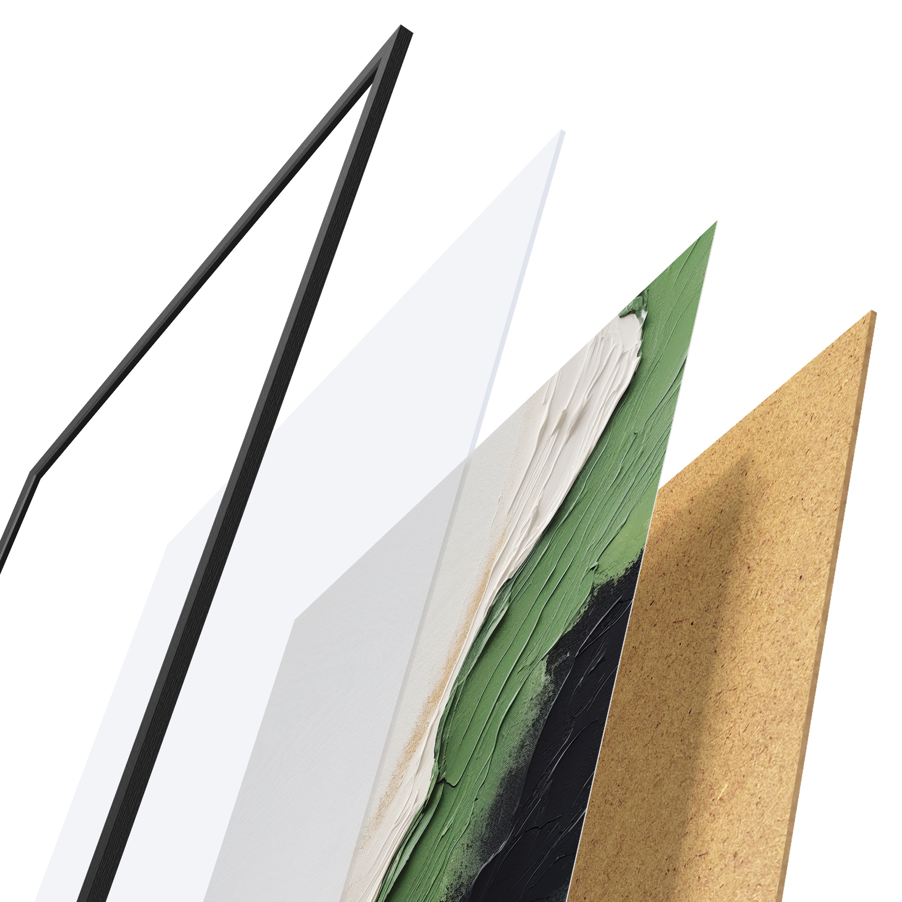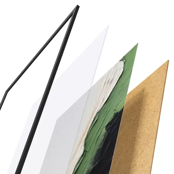 Le poster se compose d'un cadre, d'un plexiglas, d'une image imprimée et d'un support en aggloméré. Le poster peut être immédiatement accroché au mur grâce aux fixations au dos.