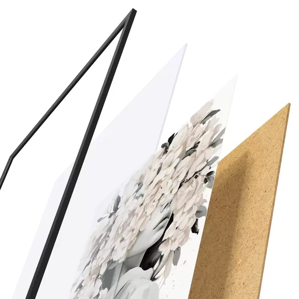 Le poster se compose d'un cadre, d'un plexiglas, d'une image imprimée et d'un support en aggloméré. Le poster peut être immédiatement accroché au mur grâce aux fixations au dos.