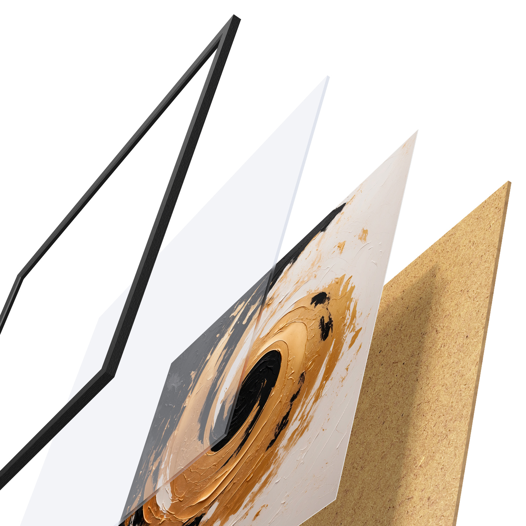 Le poster se compose d'un cadre, d'un plexiglas, d'une image imprimée et d'un support en aggloméré. Le poster peut être immédiatement accroché au mur grâce aux fixations au dos.