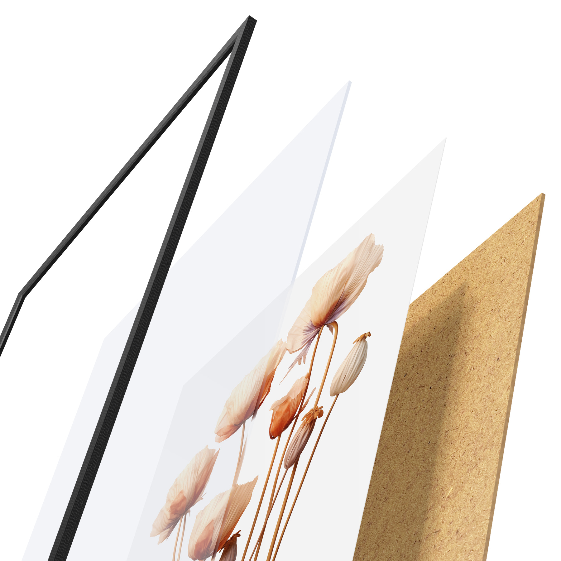 Le poster se compose d'un cadre, d'un plexiglas, d'une image imprimée et d'un support en aggloméré. Le poster peut être immédiatement accroché au mur grâce aux fixations au dos.