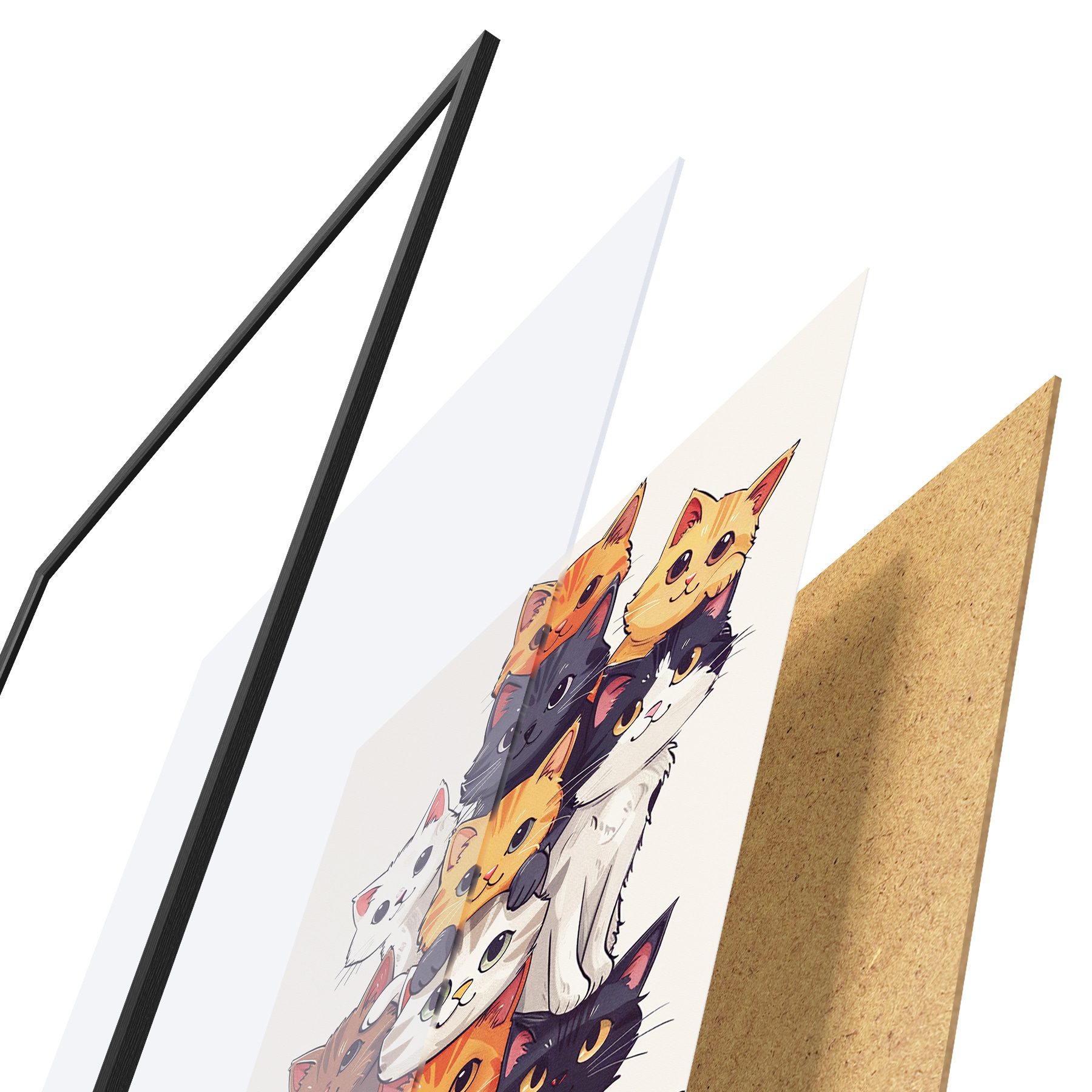 Le poster se compose d'un cadre, d'un plexiglas, d'une image imprimée et d'un support en aggloméré. Le poster peut être immédiatement accroché au mur grâce aux fixations au dos.
