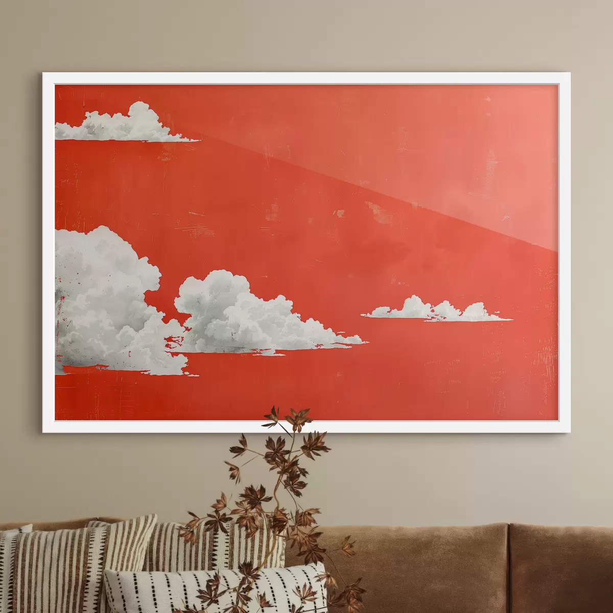 Affiche Ciel rouge avec nuages blancs Non f40974