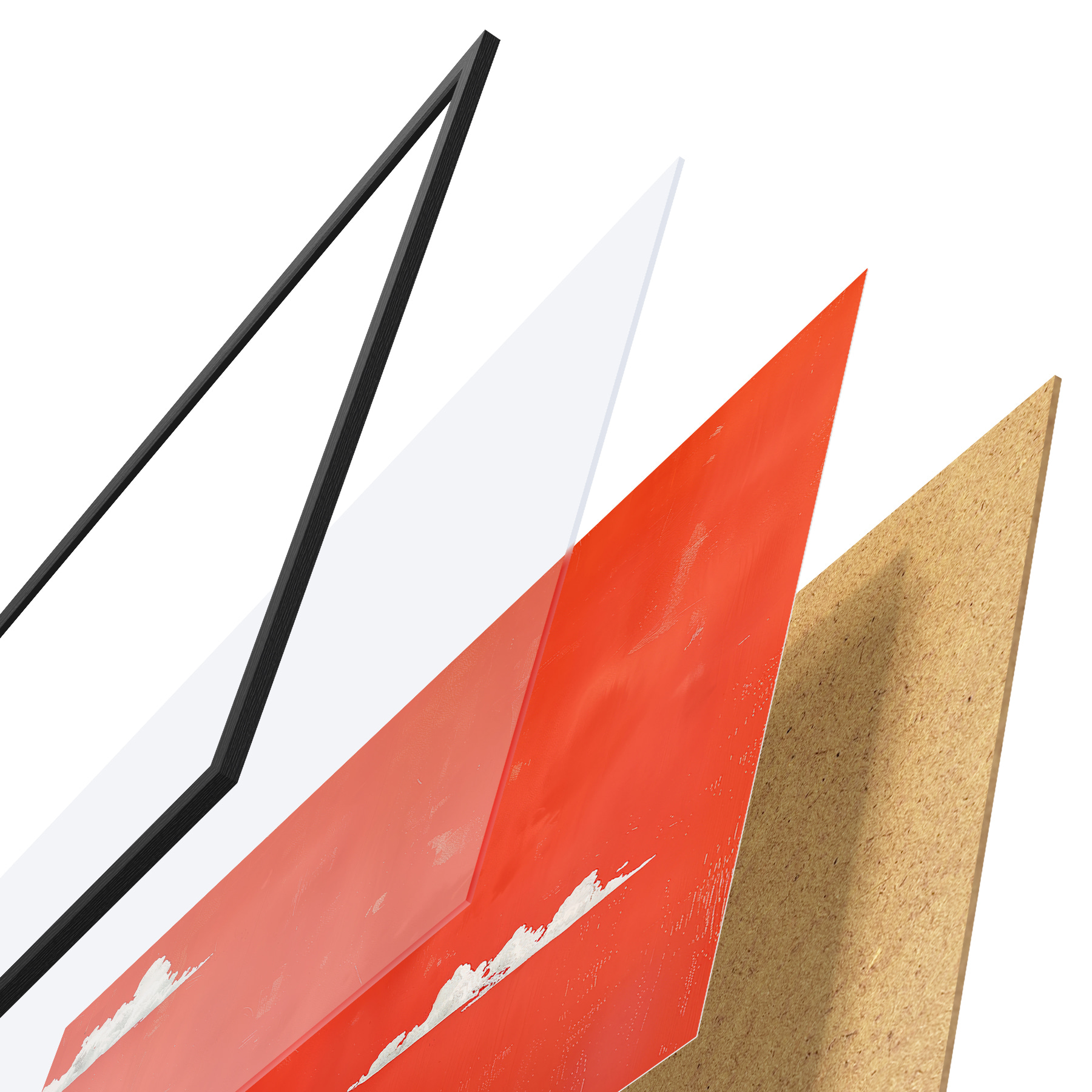 Le poster se compose d'un cadre, d'un plexiglas, d'une image imprimée et d'un support en aggloméré. Le poster peut être immédiatement accroché au mur grâce aux fixations au dos.