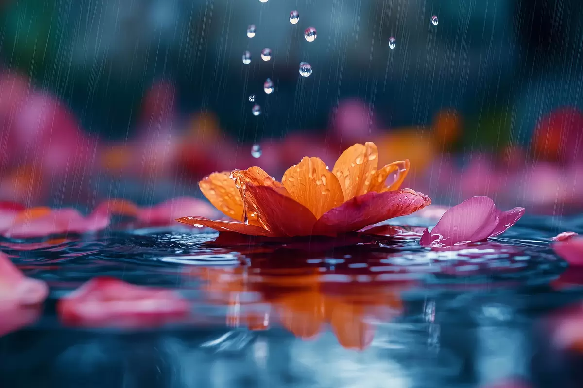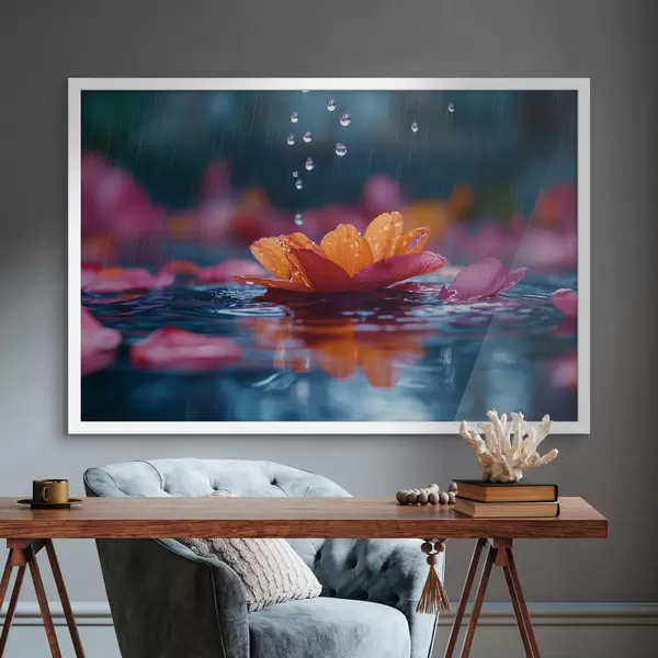 Affiche Un nénuphar avec des gouttes de pluie Non f40977