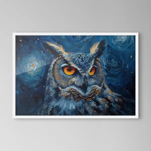 Affiche Le regard d'un hibou la nuit dans un ciel à la Van Gogh Non f40982