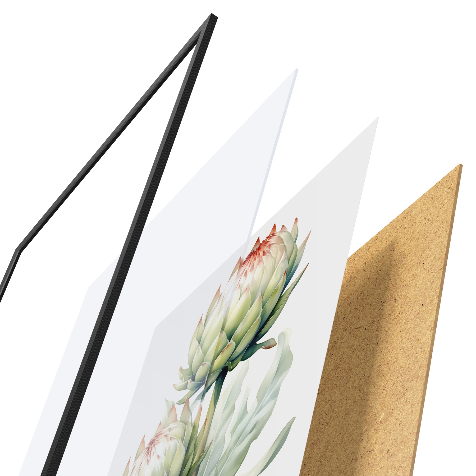 Le poster se compose d'un cadre, d'un plexiglas, d'une image imprimée et d'un support en aggloméré. Le poster peut être immédiatement accroché au mur grâce aux fixations au dos.
