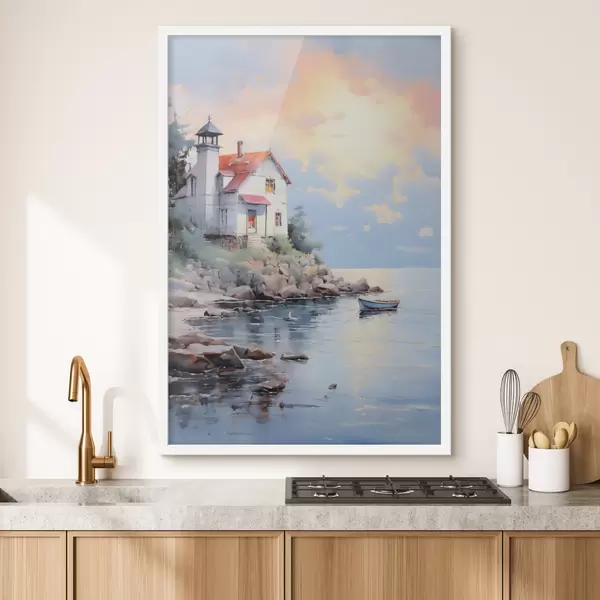 Affiche Maison sur la plage au bord de la mer au coucher du soleil f41010