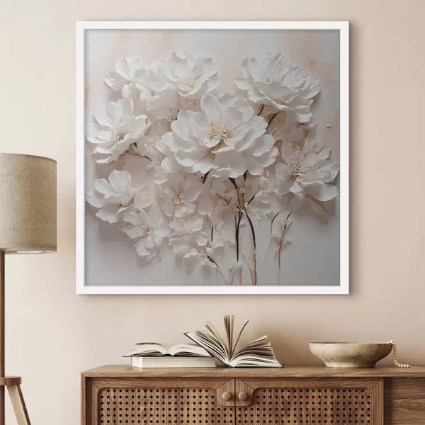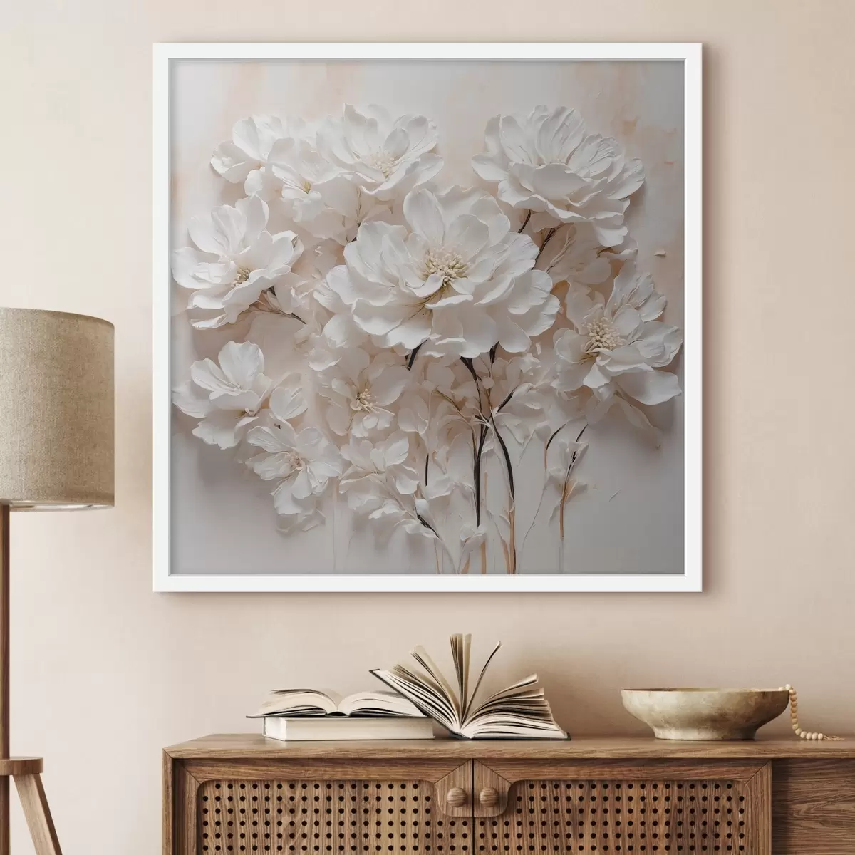 Affiche Fleurs blanches sur fond blanc-orange Non f41042