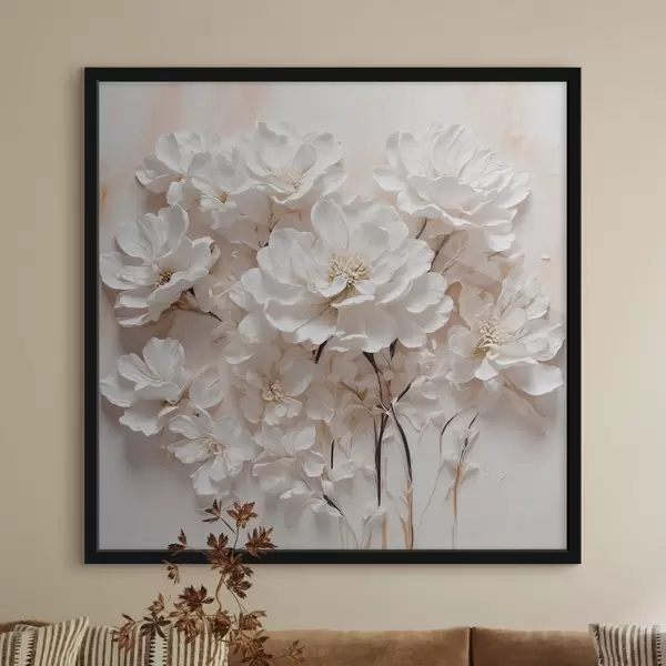 Affiche Fleurs blanches sur fond blanc-orange f41042