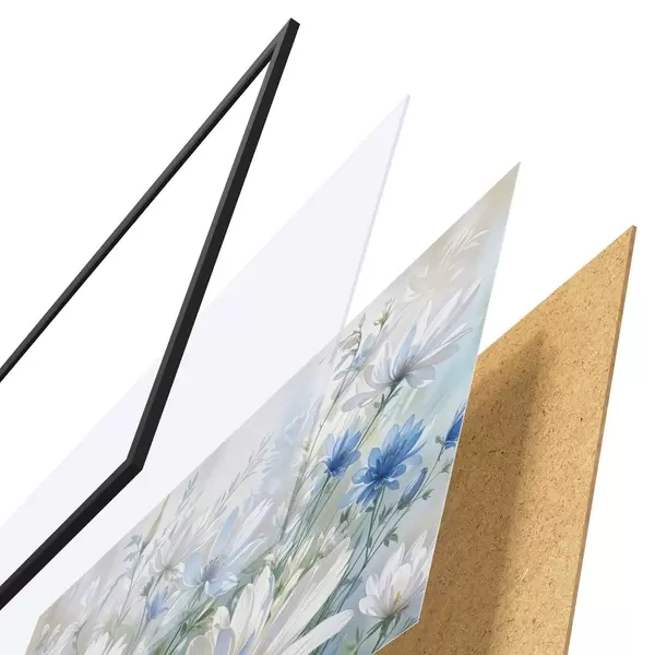 Le poster se compose d'un cadre, d'un plexiglas, d'une image imprimée et d'un support en aggloméré. Le poster peut être immédiatement accroché au mur grâce aux fixations au dos.