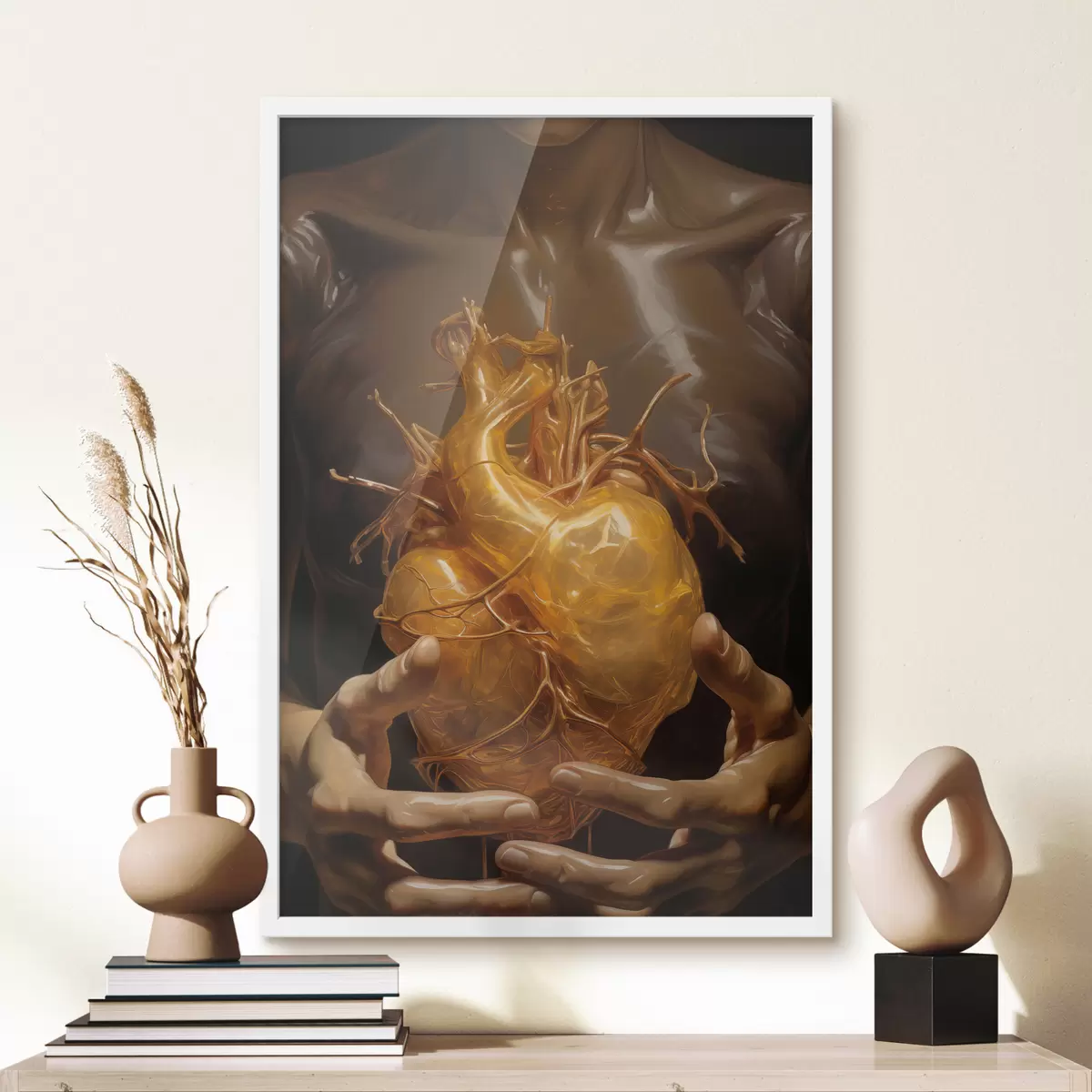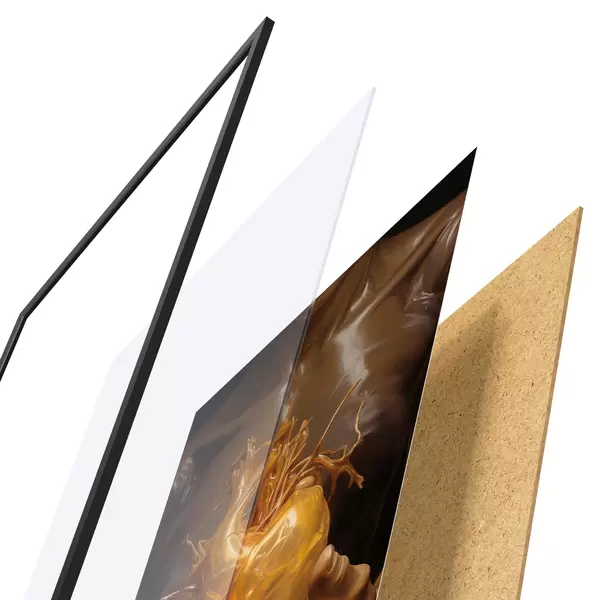Le poster se compose d'un cadre, d'un plexiglas, d'une image imprimée et d'un support en aggloméré. Le poster peut être immédiatement accroché au mur grâce aux fixations au dos.
