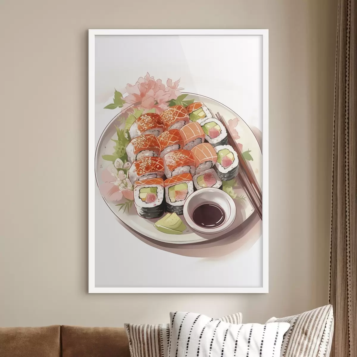 Affiche Aquarelle assiette de sushi, saumon, délicieux Non f41180