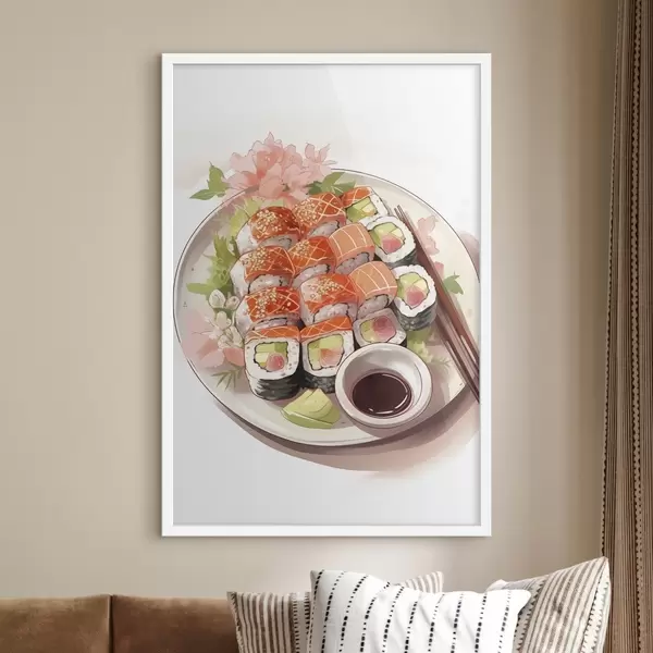 Affiche Aquarelle assiette de sushi, saumon, délicieux f41180