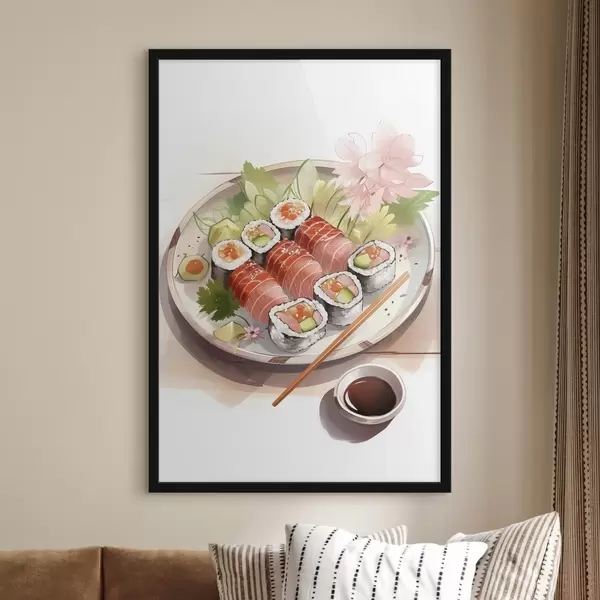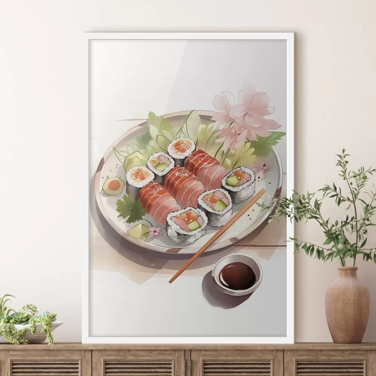 Affiche Aquarelle sushi, floral, japonais Non f41181