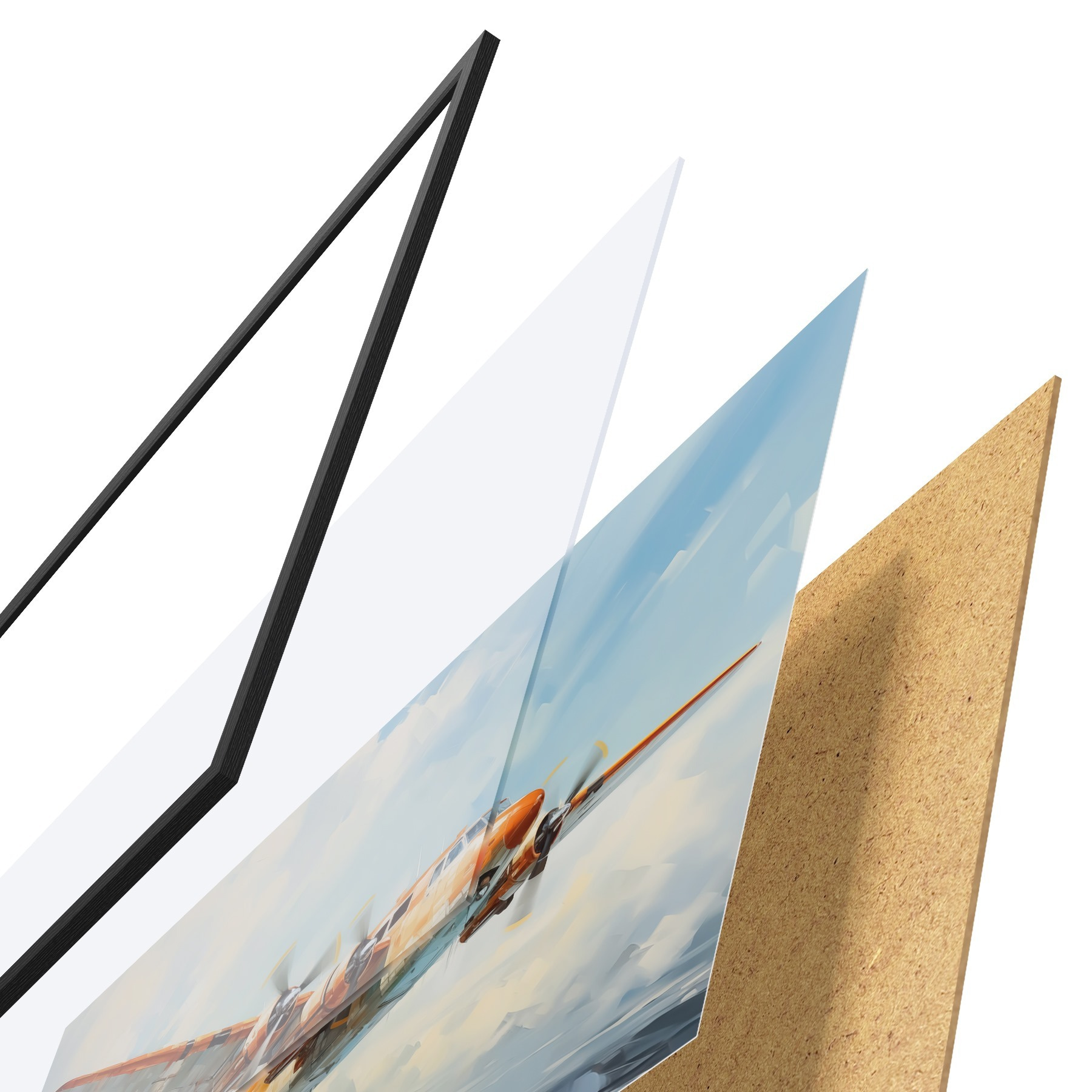 Le poster se compose d'un cadre, d'un plexiglas, d'une image imprimée et d'un support en aggloméré. Le poster peut être immédiatement accroché au mur grâce aux fixations au dos.