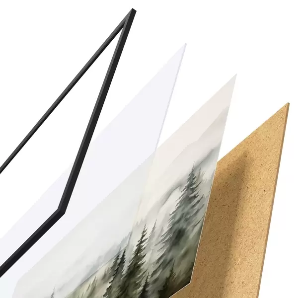 Le poster se compose d'un cadre, d'un plexiglas, d'une image imprimée et d'un support en aggloméré. Le poster peut être immédiatement accroché au mur grâce aux fixations au dos.
