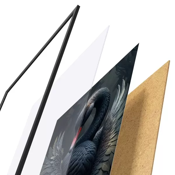 Le poster se compose d'un cadre, d'un plexiglas, d'une image imprimée et d'un support en aggloméré. Le poster peut être immédiatement accroché au mur grâce aux fixations au dos.