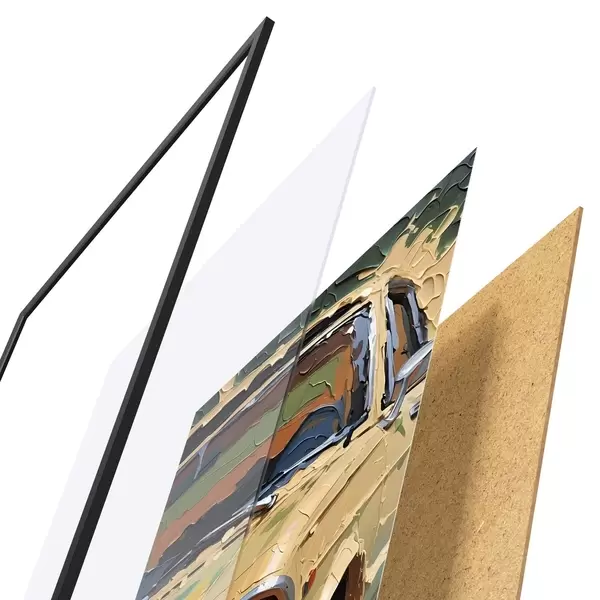Le poster se compose d'un cadre, d'un plexiglas, d'une image imprimée et d'un support en aggloméré. Le poster peut être immédiatement accroché au mur grâce aux fixations au dos.