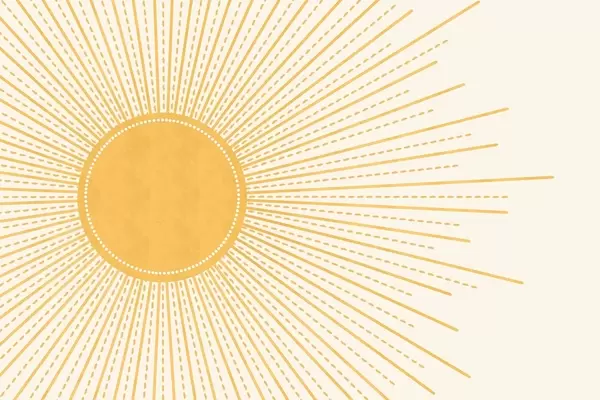 Affiche Un soleil jaune vif avec des rayons de soleil rayonnants sur un fond clair, créant une atmosphère chaude et ensoleillée f41268