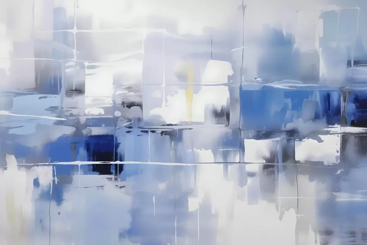 Affiche Une abstraction moderne dans des tons bleus, blancs et gris avec des lignes et des formes floues f41269