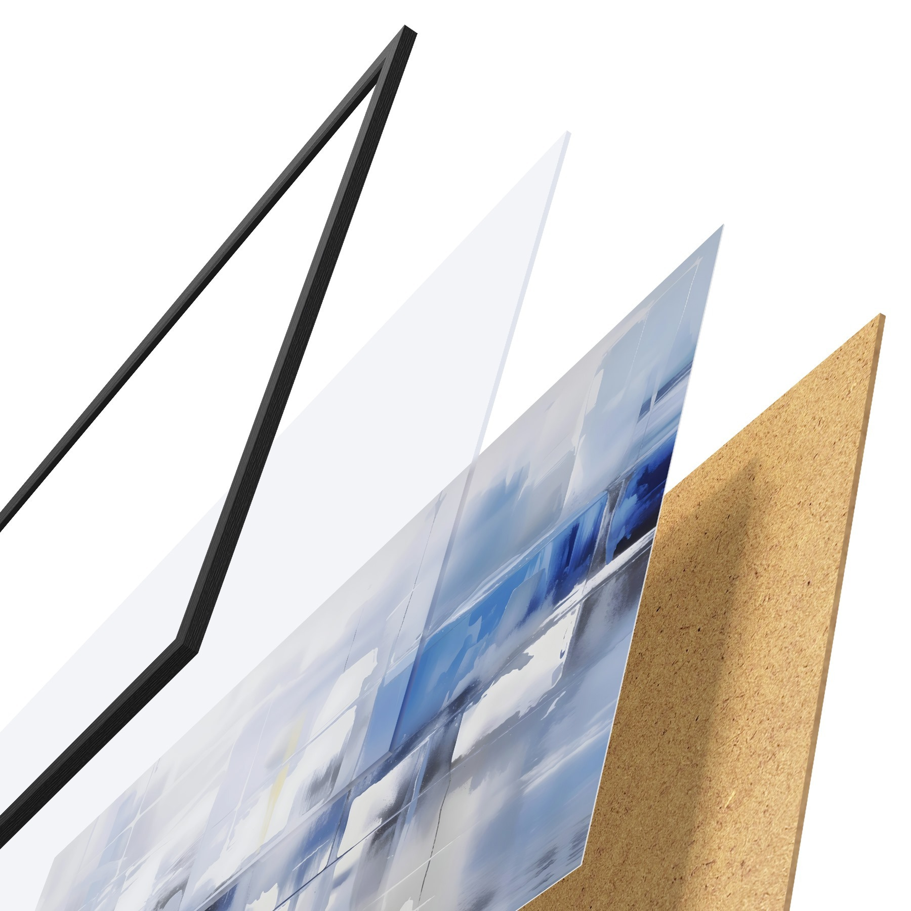 Le poster se compose d'un cadre, d'un plexiglas, d'une image imprimée et d'un support en aggloméré. Le poster peut être immédiatement accroché au mur grâce aux fixations au dos.