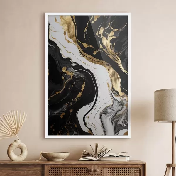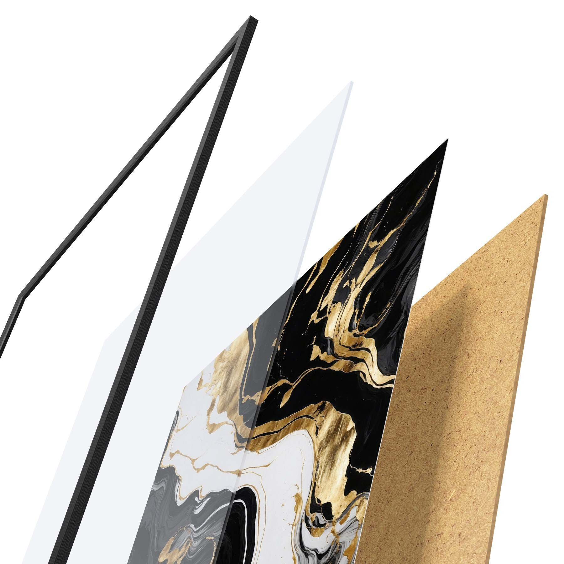 Le poster se compose d'un cadre, d'un plexiglas, d'une image imprimée et d'un support en aggloméré. Le poster peut être immédiatement accroché au mur grâce aux fixations au dos.