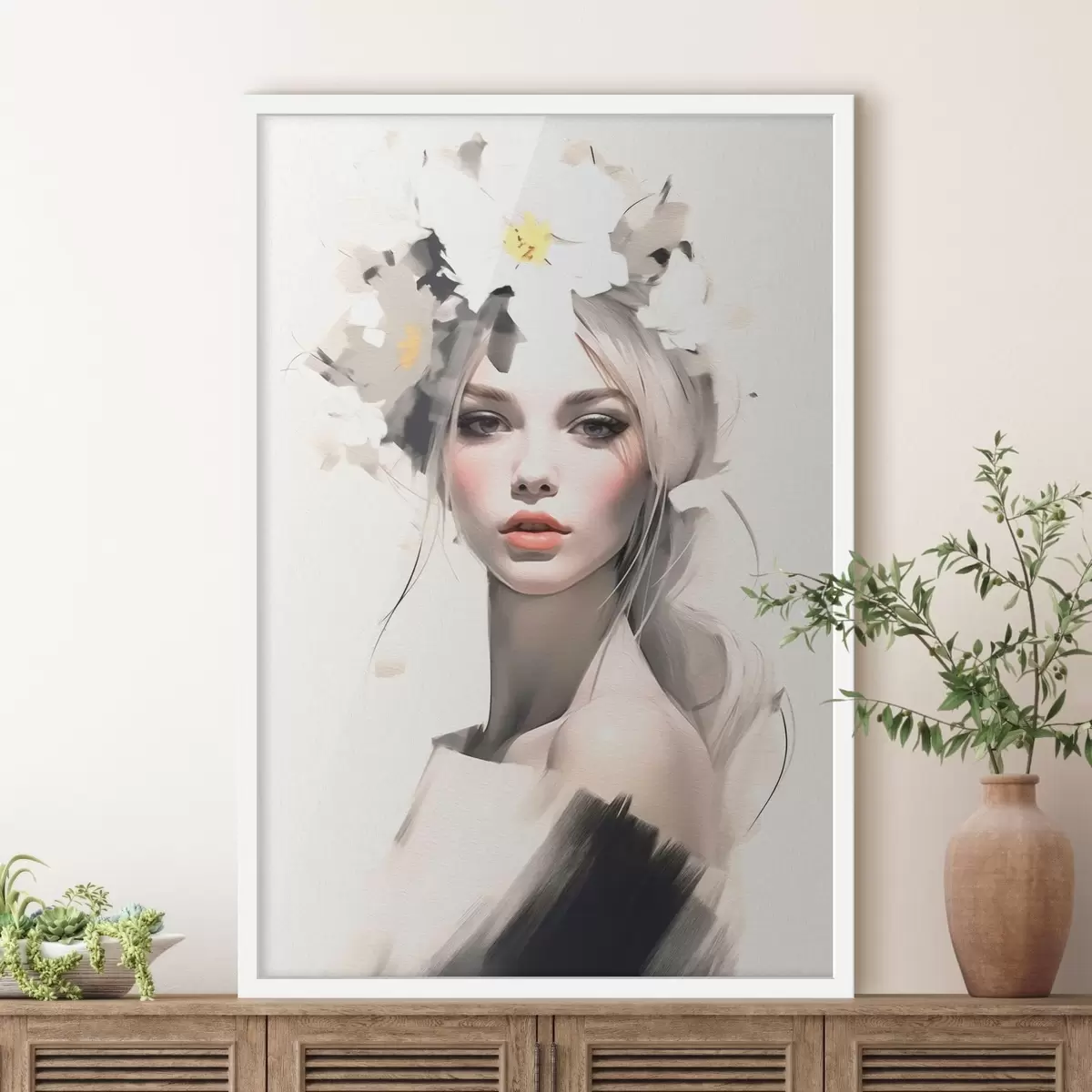 Affiche Jeune fille modèle avec des fleurs dans les cheveux f41321