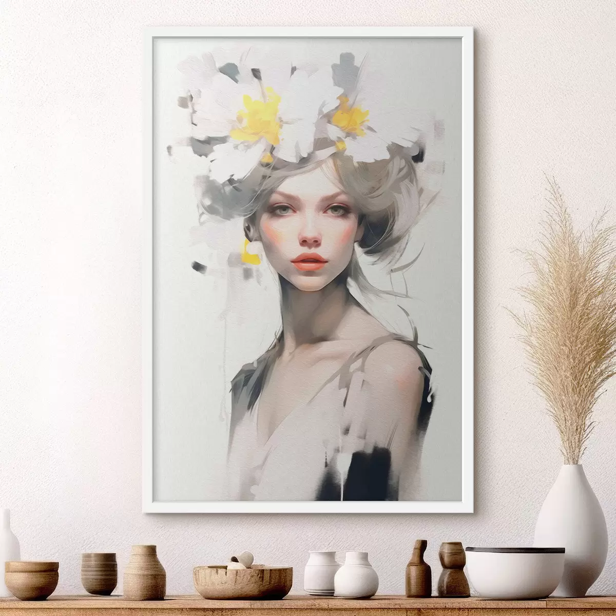 Affiche Modèle avec des fleurs sur la tête Non f41322