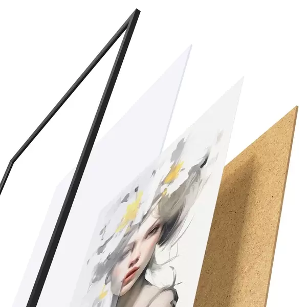 Le poster se compose d'un cadre, d'un plexiglas, d'une image imprimée et d'un support en aggloméré. Le poster peut être immédiatement accroché au mur grâce aux fixations au dos.