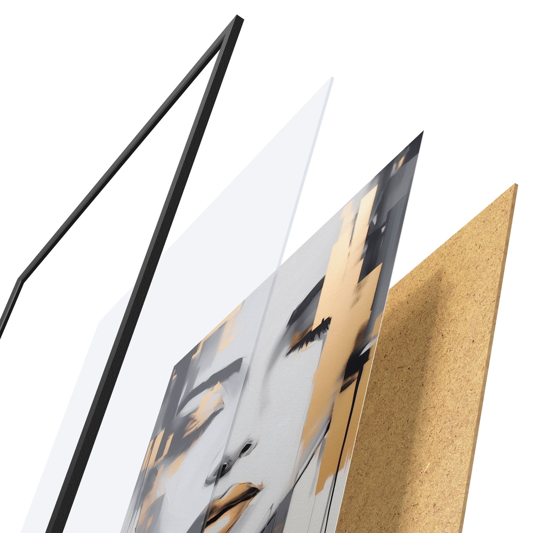Le poster se compose d'un cadre, d'un plexiglas, d'une image imprimée et d'un support en aggloméré. Le poster peut être immédiatement accroché au mur grâce aux fixations au dos.