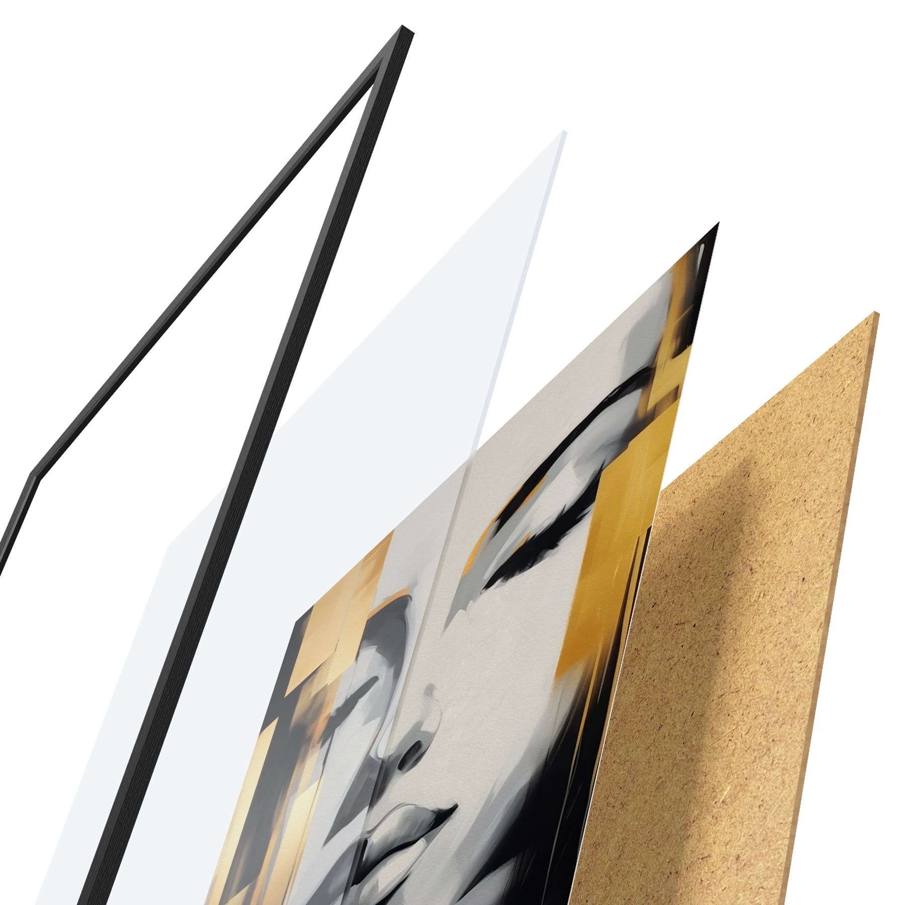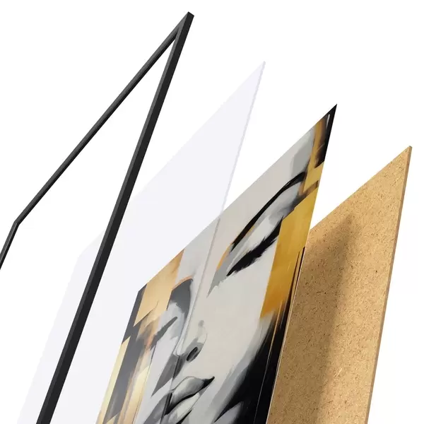 Le poster se compose d'un cadre, d'un plexiglas, d'une image imprimée et d'un support en aggloméré. Le poster peut être immédiatement accroché au mur grâce aux fixations au dos.