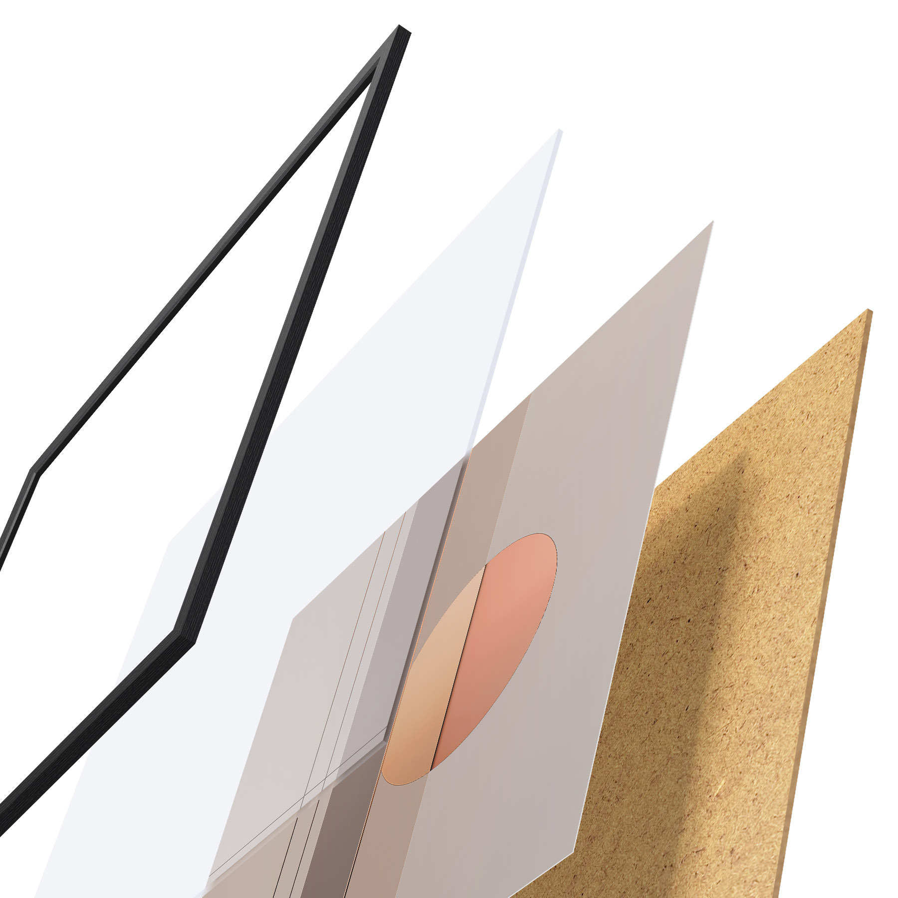 Le poster se compose d'un cadre, d'un plexiglas, d'une image imprimée et d'un support en aggloméré. Le poster peut être immédiatement accroché au mur grâce aux fixations au dos.